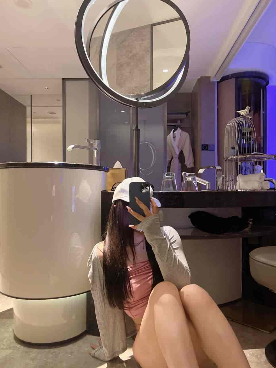 - 细节控福利:长发在微风中微微飘动,口罩边缘露出的一小截下巴线条精致到犯规。她的站姿随意却优雅,手插口袋或轻扶树干的动作都带着少女的青涩与慵懒。皮肤在自然光下几乎没有瑕疵,白得反光,属于“素颜也能打”的顶级配置。
